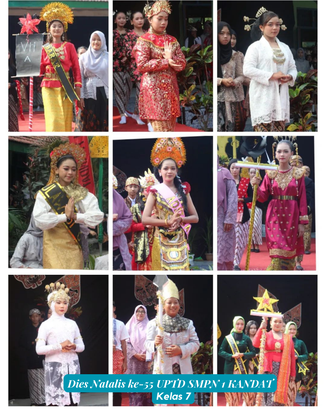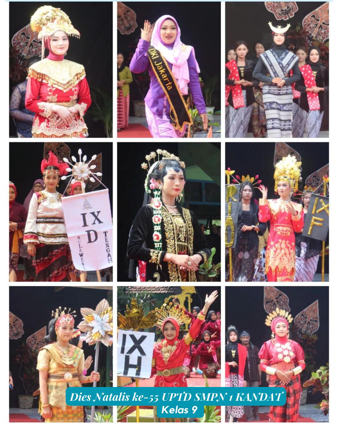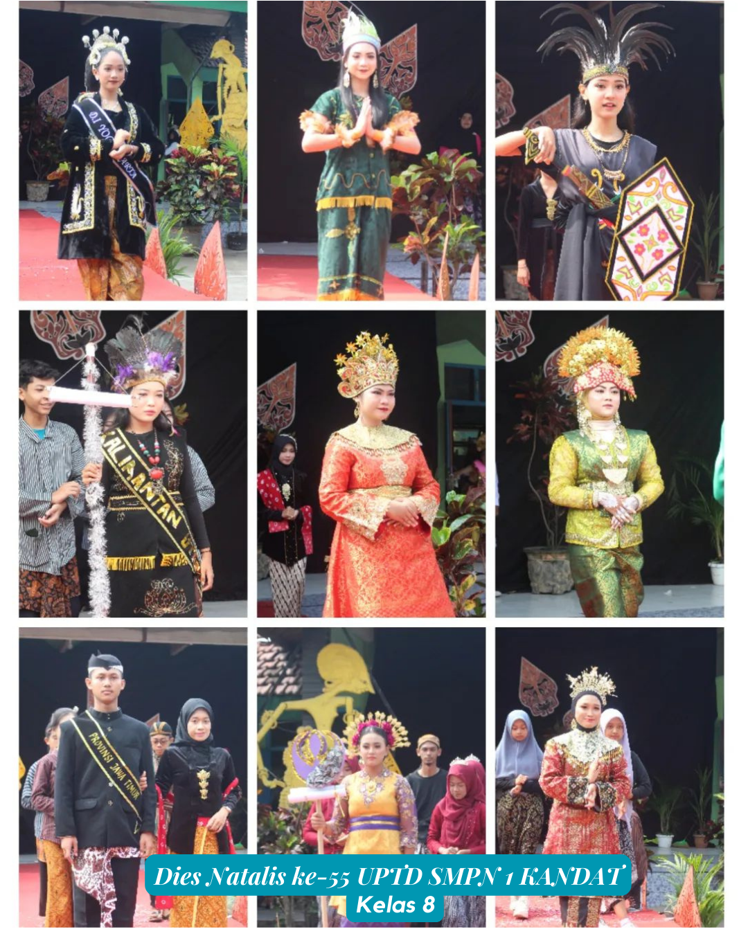 Rangkaian acara Dies Natalis ke-55 SMPN 1 Kandat akan berlanjut pada Selasa dan Rabu dengan gelar budaya dihari selasa berupa Tari Kolosal yang diikuti oleh ekstra tari siswa SMPN 1 Kandat dan hari Rabu berupa Kirab Budaya dimana setiap kelas berpartisipasi memakai baju adat pilihan .