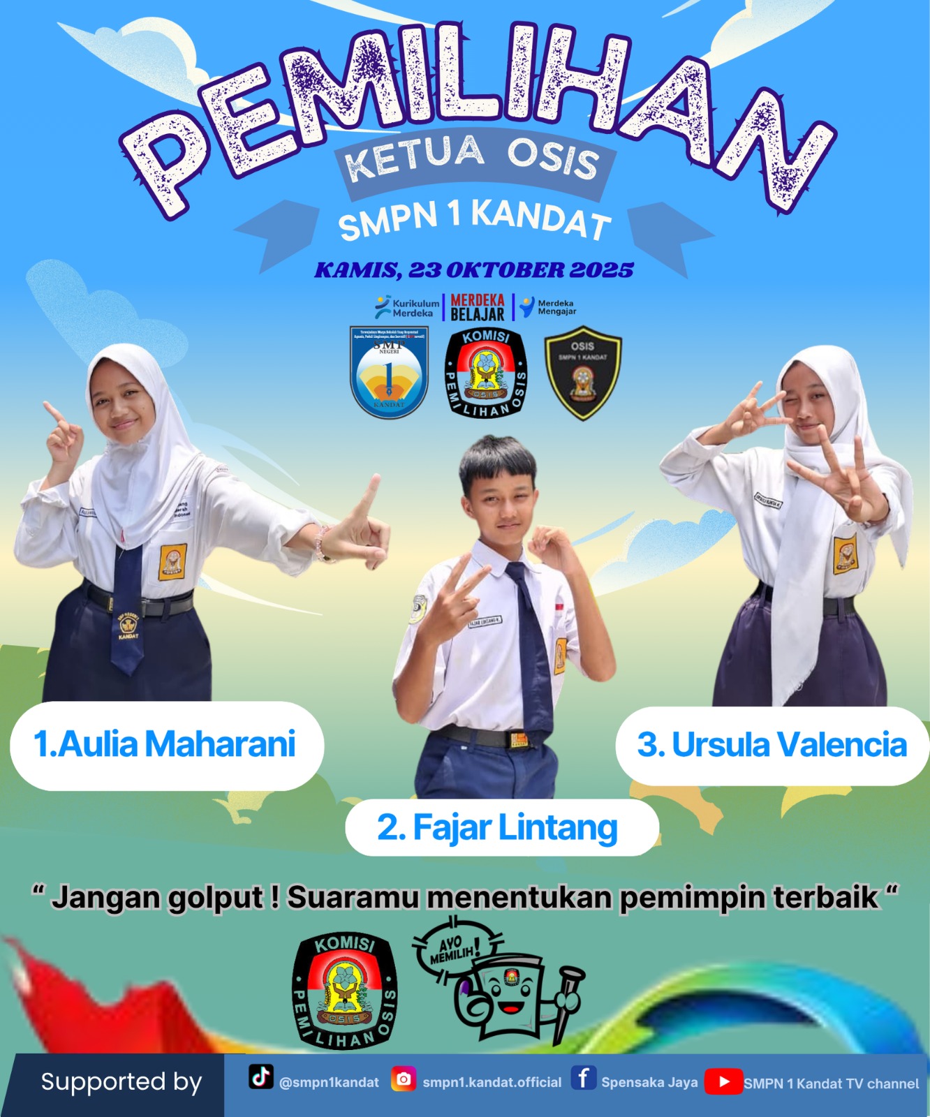 20 Oktober 2025- SMP Negeri 1 Kandat mengadakan kampanye terbuka pemilihan ketua OSIS. Sebelum acara ini, sudah dilakukan penyeleksian bakal calon melalui wawancara, tes tulis. Hasil dari tersebut terpilihlah 3 paslon. Kampanye diadakan di lapangan upacara SMP Negeri 1 Kandat pada hari Senin 20 Oktober 2025.